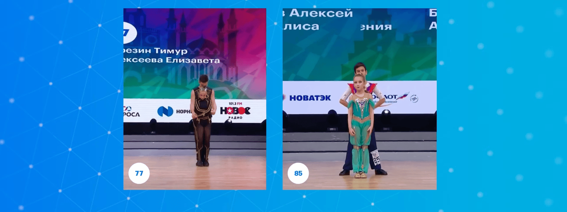 По правилам проведения соревнований судьи должны видеть одновременное выступление всех пар в заходе. Поэтому видеозаписи участников собираются в один видеофайл. Для определения момента начала выступления в отсылаемые аудиотреки добавляется специальный сигнал синхронизации. ML-модель находит этот сигнал в присылаемых видео, анализируя мел-спектрограмму. Таким образом определяются таймкоды начала выступления во всех видео.