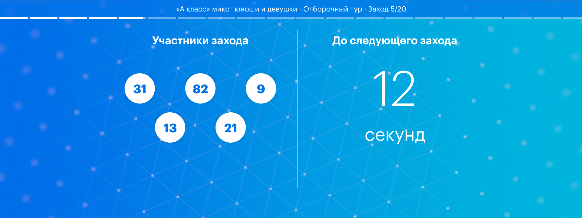 - Видео подготавливается пока судьи оценивают предыдущее выступление, оставаясь в сетке выступлений.
